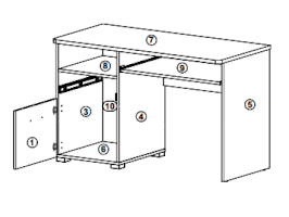 Стол состоит из прямоугольной крышки, комбинированной тумбы
