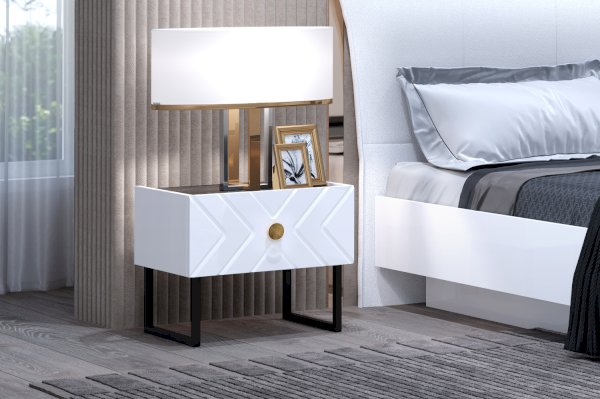 Модель оснащена выдвижным ящиком на направляющих скрытого типа. Высокие металлические опоры делают мебель практичной, уборка в труднодоступных местах становится гораздо проще.