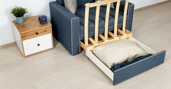 Диван-кровать Найс - компактное современное решение для гостиных, квартир-студий, детских и подростковых комнат. Может использоваться в качестве постоянного спального места для детей и подростков или гостевого спального места взрослого.
