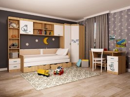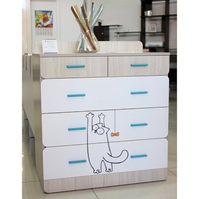 Детская «Кот» - удобная и безопасная мебель для вашего ребенка. Яркий принт на мебели создаст атмосферу в детской комнате. Каждый модуль комплектуется ручками двух цветов, что даст Вам прекрасную возможность, выбрать более подходящий цвет для вашего интерьера.