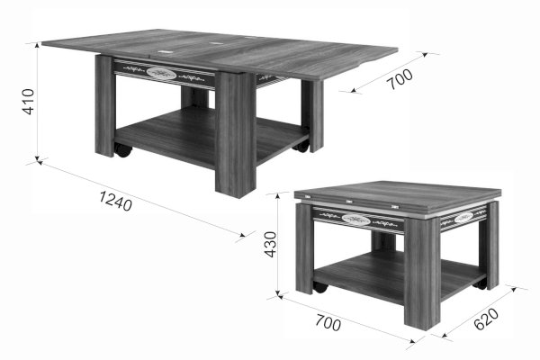 Журнальный стол «Адам 1» отличает безупречность дизайна и функционала. Он компактный, но способен увеличиваться в 2 раза, благодаря специальному механизму. Стол «Адам 1» мобильный на колесиках, легко перемещается в нужное место. А его элегантный дизайн украсит Вашу гостиную.