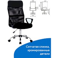 В основании кресла прочное металлическое пятилучие и надежный газпатрон. Конструкцией предусмотрена нагрузка до 100 кг.