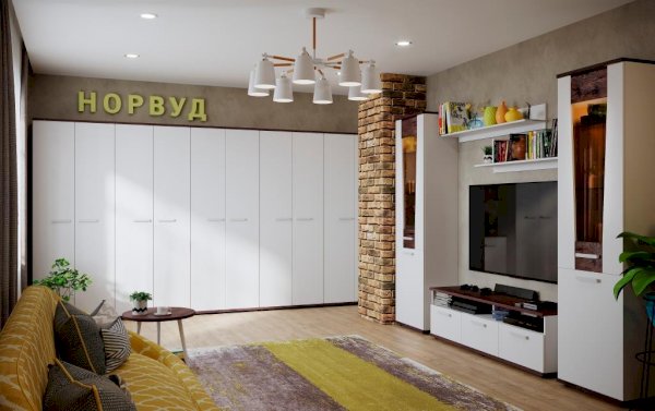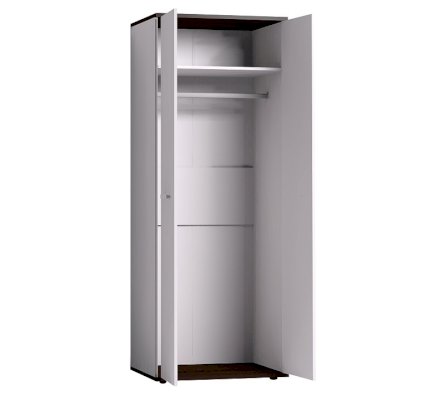 Двустворчатый шкаф для одежды Норвуд 12 в белом декоре будет уместен как в гостиной, так и в спальне. Контрастный белому декор Орех шоколадный верхней и нижней деталей шкафа придает изюминку этому модулю. Внутреннее наполнение небольшого шкафа состоит из стационарной штанги длиной 757 мм и верхней полки. Распашные фасады шкафа открываются за светлые ручки из массива дерева.