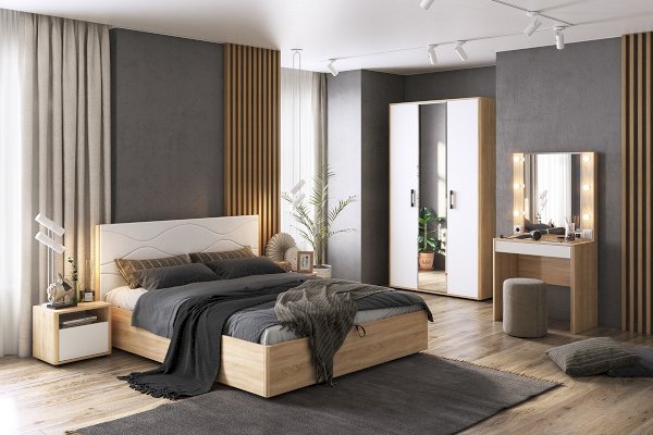 Этот трехстворчатый шкаф из серии Зара 2 идеально подойдет для тех, кто ценит как элегантность, так и практичность. Прекрасно дополнит интерьер вашей комнаты благодаря своему современному и стильному дизайну. Отличительной чертой дизайна являются закругленные углы, что обеспечивает безопасное использование. Кроме того, центральный фасад декорирован зеркалом, а контраст между цветами корпуса и фасадов придает шкафу особую эксклюзивность.