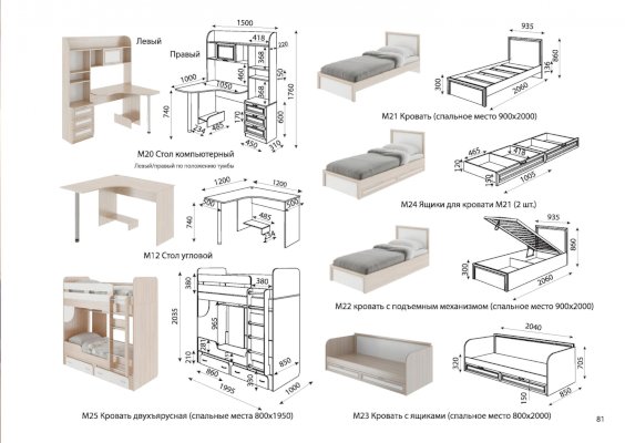 2. Есть модули для функционального обустройства комнаты двоих детей - подростков.