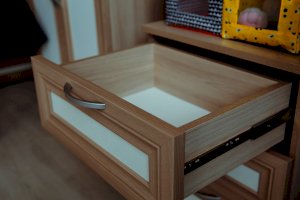 7. Надежная двухъярусная подростковая кровать М25 с удобными полками и выкатными ящиками на роликовых опорах.