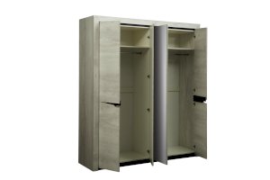 Шкаф для одежды 4х дверный 33.01 внутреннее наполнение  бетон пайн белый/белый/венге
