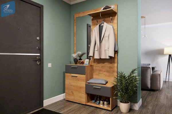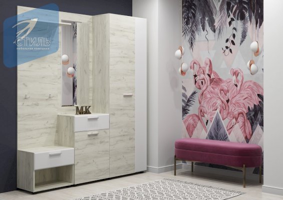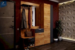 Вместительные тумбы с выдвижными ящиками позволяют хранить как обувь, так и десятки необходимых мелочей. Большое зеркало с фацетом, по периметру, позволит не упустить ничего в своей внешности перед выходом из дома. А емкий шкаф вместит всю необходимую одежду, для актуального сезона.