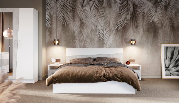 Кровать Антария – акцент спальни, выполнена в стиле минимализм, удобна и просторна, можно с комфортом проводить свободное время. Комбинированное изголовье из ЛДСП с асимметричными скошенными линиями вносит свободу и движение в жилое пространство, делает интерьер более сложным и необычным. Надежное и крепкое основание кровати выполнено из ламинированной плиты – гарантирует отличную вентиляцию и подойдет для любителей спать на жестком матрасе.