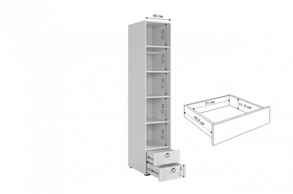 Гибкость и функциональность - еще две характеристики, которые делают Ева шкаф однодверный 101.01 особенным. Он оснащен одной секцией со штангой и дополнительными полками, которые можно легко менять. Вы можете использовать полки для складирования своих вещей или убрать их, чтобы повесить одежду на штангу. Кроме того, присутствие двух выдвижных ящиков на шариковых направляющих дает вам возможность удобно хранить мелкие предметы.
