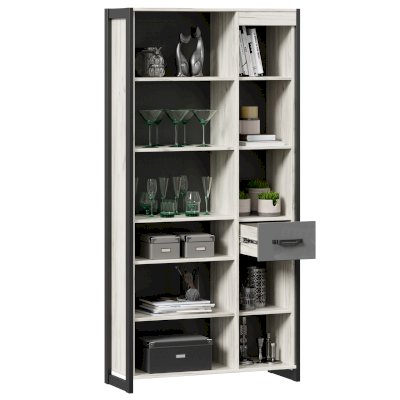 • Под ними 1 ящик на шариковых направляющих полного выдвижения. Размер фасада 312х189 мм. Внизу 2 открытые ниши, размер 298х268 мм.