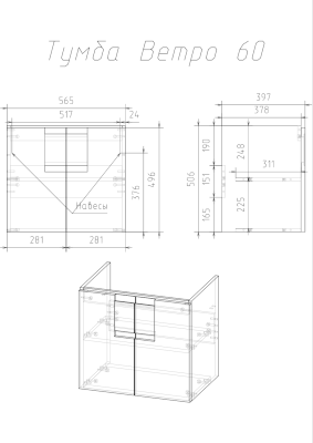• ширина - 56,5 см