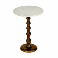 Красивый кофейный столик Secret De Maison BOLLY из коллекции SILVER отлично впишется практически в любой интерьер, поможет сделать его завершенным, более комфортным и уютным. Устойчивое основание столика выполнено из алюминиевого сплава с отделкой под латунь и чеканкой ручной работы, оно играет светом, притягивает блеском, но в то же время выглядит просто и без излишеств. Уникальная столешница из натурального мрамора придает особенную красоту изделию. Благодаря компактным размерам и небольшому весу, столик мобилен. Его можно поставить в любой части комнаты и переместить при необходимости, использовать как по прямому назначению, так и в качестве дополнительной сервировочной поверхности. Модель прочна, надежна, не требует специального ухода и будет долгое время радовать вас своим первоначальным видом. Поставляется в собранном виде.