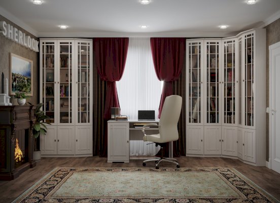 Благодаря модульности, библиотеку SHERLOCK можно расположить в Вашем домашнем кабинете, выбрав для компоновки именно те модули, которые Вам нужны. Письменный стол, расположенный у окна, сделает чтение и работу с документами максимально комфортным. В высоких изящных шкафах библиотеки SHERLOCK поместятся книги любого формата: от самых маленьких книг до больших иллюстрированных альбомов, поскольку Вы сами можете регулировать высоту полок. Тонированные стекла фасадов высоких книжных шкафов защитят книги от прямых солнечных лучей, пожелтения страниц, пыли и позволят без проблем найти нужную книгу.