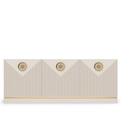 Мебель выполнена в теплом, приятном для глаз оттенке «сатин». Корпус из ЛДСП дополняют фасады из высококачественного МДФ в плёнке ПВХ с эффектом soft touch. Оригинальный дизайн мебели подчеркивают эффектные металлические ручки в цвете глянцевое золото, золотая кромка, разделяющая корпус и цоколь, а также фрезеровка фасадов в виде параллельных тонких полос.