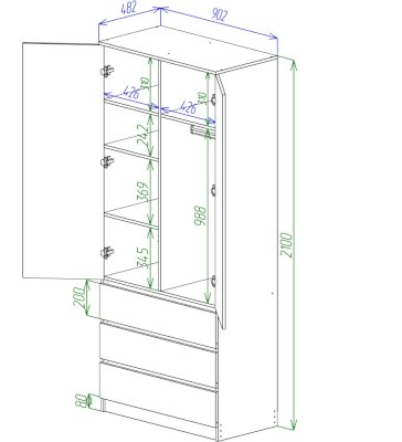Двухдверный шкаф Охта Лайт 900.3 (Петровская мебель)