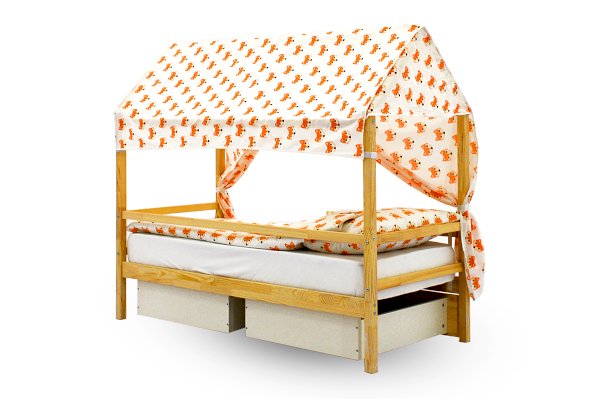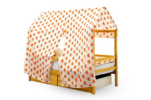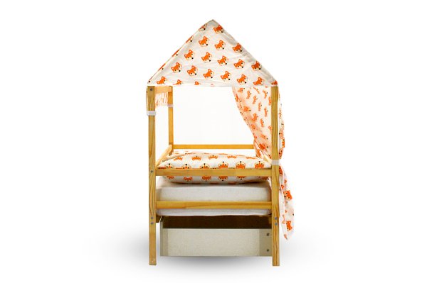 Крыша выполнена из бязи – это нежный, мягкий и гипоаллергенный материал, который абсолютно безопасен и приятен на ощупь, чтобы вашему крохе было максимально комфортно играть днем и отдыхать ночью. Материал не имеет никаких посторонних запахов, отличается прочностью и износоустойчивостью, выдержит много стирок, при этом рисунок не потеряет свою яркость и привлекательность.