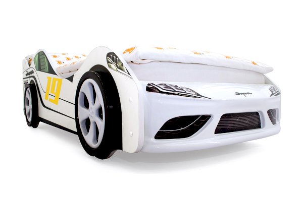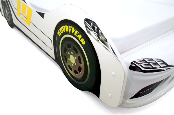 Кровать оборудована бампером из пластика АБС, допустимая нагрузка до 90 кг, к нему прилагаются наклейки в виде фар, радиаторной решётки и логотипа автомобиля. Наклейки надёжно крепятся, легко переклеиваются при необходимости. Кроме того, предусмотрены защитные бортики, предотвращающие падение, если ребёнок активно ворочается во время сна. Все углы конструкции закруглены, края покрыты кромкой, что обеспечивает безопасность ребёнка.