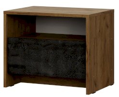 Прикроватная тумба Лофт состоит из открытой ниши и отделения с выдвижным ящиком. Несмотря на компактный размер, Вы сможете разместить все вещи, которые должны быть под рукой перед сном и после пробуждения. Отсутствие наружной фурнитуры выглядит стильно, при этом ящик открывается и закрывается легким движением руки.