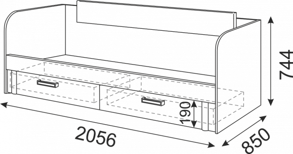 • Кровать имеет 2 выдвижных ящика.