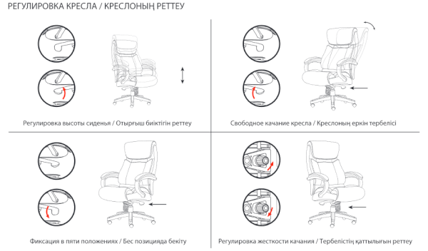 Тип механизма кресла: "мультиблок" качание с плавным ходом и фиксацией в нескольких положениях