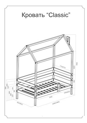 Кроватка-домик Classic в сосновом исполнении. Прочная конструкция, легкая сборка. Она идеально впишется в интерьер детской комнаты и непременно станет ее украшением!