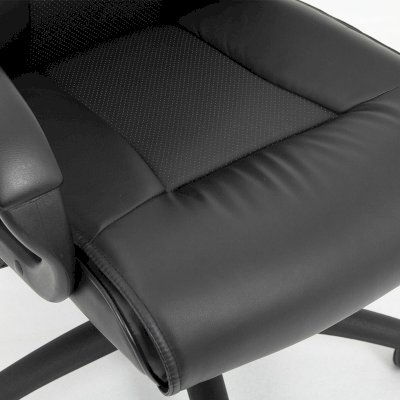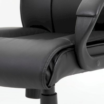 Офисное кресло с минималистичным дизайном. Износостойкая экокожа, прочные пластиковые подлокотники с накладками, плотная набивка и механизм качания с фиксацией под вес пользователя - ничего лишнего, всё самое необходимое для продуктивной работы. Доступное, качественное кресло, среднего ценового сегмента.