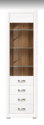 Верхняя часть изделия оснащена стеклянными полками, скрывающимися за распашной застекленной дверью