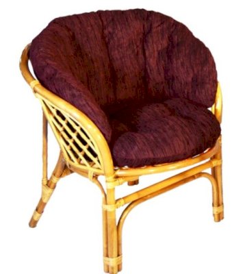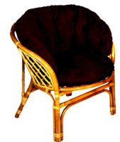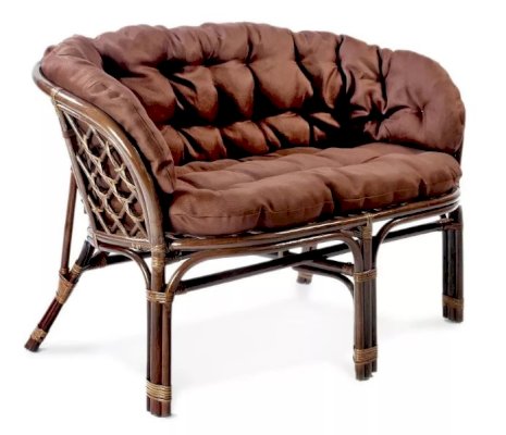 Комплект из натурального ротанга, состоящий из дивана, двух кресел и круглого столика со стеклом.