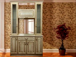Классический дизайн и плавные линии буфета Анжелика создают атмосферу красоты и гармонии. Две витрины со стеклянными полками, 4 шкафчика хранения посуды и ящик для столового серебра. Направляющие ящика полного выдвижения. Ручка бронзовая с керамической отделкой. Стекло матированное с рисунком.