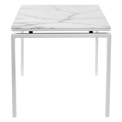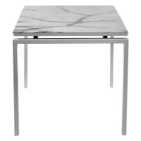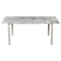 Раскладной стол с "парящей" столешницей из закалённого стекла толщиной 4 мм и рисунком под натуральный камень, на основании из ЛДСП 22 мм, станет центром притяжения внимания. Центральная вставка позволит увеличить стол на 40 см с 140 до 180см. Прямые устойчивые металлические ножки позволят с комфортом разместиться большой компании. Стол поставляется в разобранном виде (2 коробки).