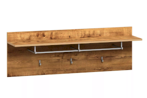 Вешалка Livorno - стильная замена платяному шкафу в малогабаритной прихожей. Модуль выполнен в виде настенной панели с тремя крючками для одежды. В верхней части вешалки расположены полка для головных уборов и аксессуаров. Модель также оснащена штангой для аккуратного размещения одежды на вешалках-плечиках.