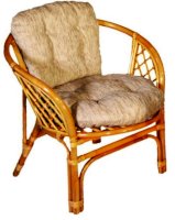 Комплект из натурального ротанга, состоящий из дивана, двух кресел и круглого столика со стеклом.