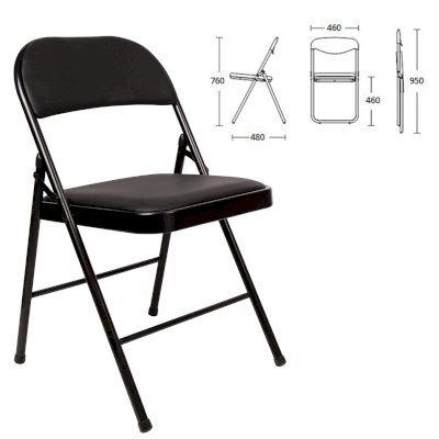 Материал обивки - качественный кожзаменитель с повышенной износостойкостью. Складная конструкция сэкономит место при перевозке и хранении. Прочная металлическая рама и металлическое основание сиденья обеспечат долговечность эксплуатации, а пластиковые насадки на ножках не дадут испортить напольное покрытие. В набивке спинки и сиденья использован поролон высокой плотности. Кресло способно выдерживать нагрузку до 110 кг.