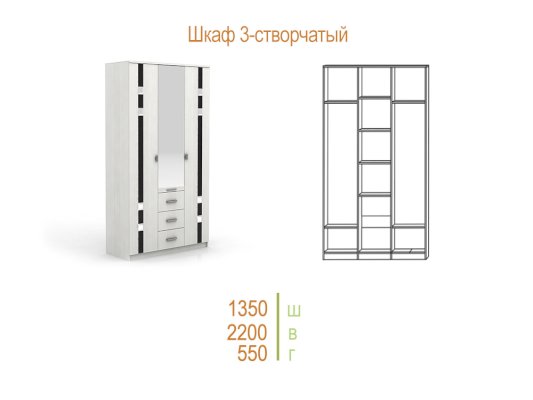 Спальный гарнитур Николь благодаря белому цвету выглядит воздушным и современным. Черное стекло и зеркала добавляют контраст и изящество.