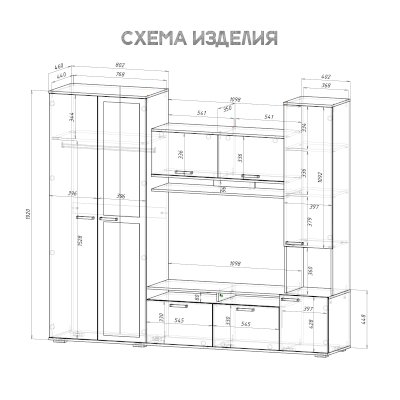 Ниша под ТВ (ШхВхГ): 1098х712х440 мм