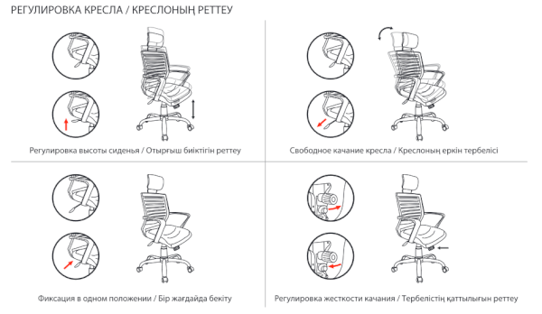 Высокая сетчатая спинка и подголовник, выраженная поддержка поясницы, прочные пластиковые подлокотники, хромированное пятилучие гарантируют комфортное долгосрочное использование.
