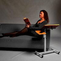 Многофункциональный стол на колесах "Palma" удобный прикроватный столик для ноутбука, завтрака в постель, чтения. Нижняя часть стола располагается под кроватью, а столешница удобно размещается над кроватью, создавая комфортные условия для работы, приема пищи и досуга. Складной столик позволяет работать в положении лежа, благодаря чему можно снизить нагрузку на мышцы шеи и спины.