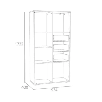 Фасад и каркас стеллажа изготовлены из ЛДСП, который не подвержен механическим повреждениям и имеет большой срок эксплуатации.